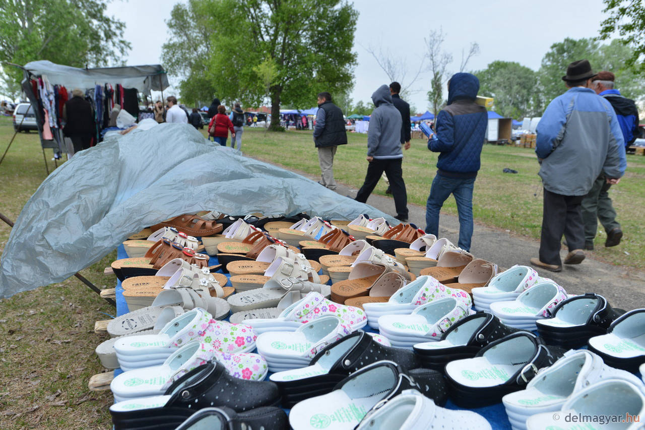 A húsvét vasárnapi mórahalmi vásárt esőfelhők árnyékolták be. Ennek ellenére eladó és vevő is akadt. Ami nem kapható a vásárban, az nem is létezik. A legjobb hangulata cipősöknél volt, ahol már 1300 forintért lehet lábbelit vásárolni a Modern Talking zenei aláfestése mellett. Van akit az sem zavart, hogy az egyik dobozban egy 39-es és egy 41-es cipő lapult.